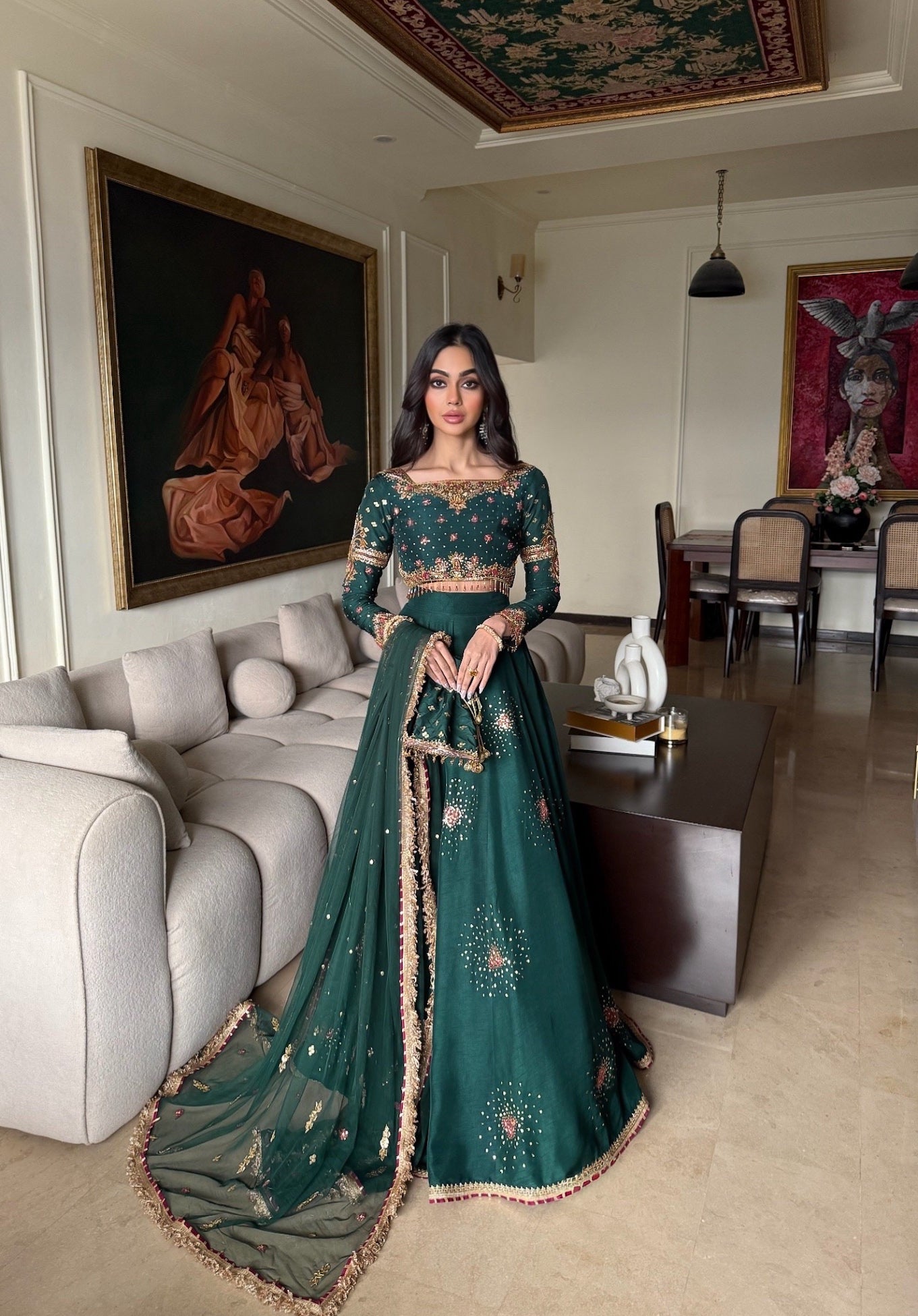 This luxurious outfit is crafted from French velvet, offering a rich texture and an elegant...